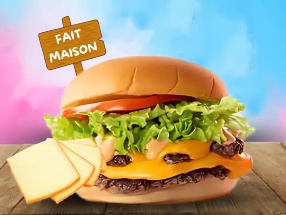 1 Poulet pané, raclette, salade, tomate, pickles d’oignon, sauce maison